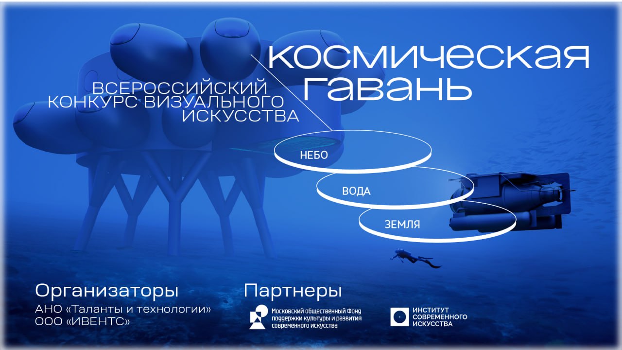 Институт современного искусства объявляет о старте Всероссийского конкурса визуального искусства «Космическая гавань: Земля - вода - небо». Мы приглашаем талантливых школьников, студентов и молодых профессионалов со всей России погрузиться в футуристическую тематику освоения морских и океанских пространств и представить свое видение будущего!
