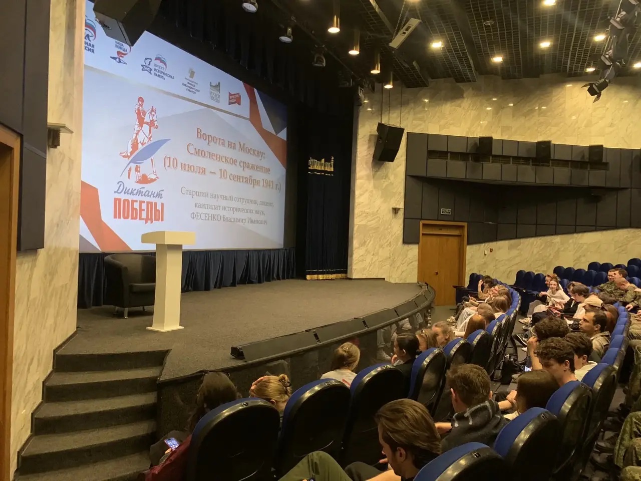 В кинозале музея студенты посмотрели фильм «Конев», раскрывающий судьбу прославленного Маршала Советского Союза. Затем состоялась лекция экспертов Музея на тему: «1941. Смоленское сражение», позволившая глубже понять одну из ключевых битв начального периода войны.